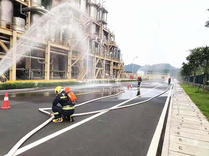 而且也可以接上兩分水與三分水等等來變出更多的水柱去滅火、最尾部都是要配上各種各樣的消防水槍、高壓水炮等來射水、可以近距離的射水、多管道的同時操作;知道將火徹底熄滅為止。