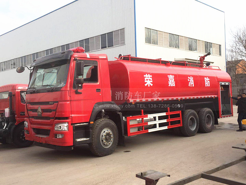 今天。我們就重點介紹下這位選手、當然、它還是采用的重汽豪沃340馬力的底盤、動力強勁自然不用多說、整車的噸位也是不在活下、采用的是豪沃后雙橋的底盤、輕輕松松應對各種路況或者水源不足的區域;也可以用來當做運水補給車使用、全車罐體一次性焊接而成、整車管道系統也是精干布局、杜絕了各種管道炸裂的后顧之憂、就算是嚴寒的冬季、在嚴寒天氣也無所畏懼、尾部泵房我們配備的消防泵燃油加裝系統、可以快速的將結冰泵口與管道融化、奔赴各種救援戰場!